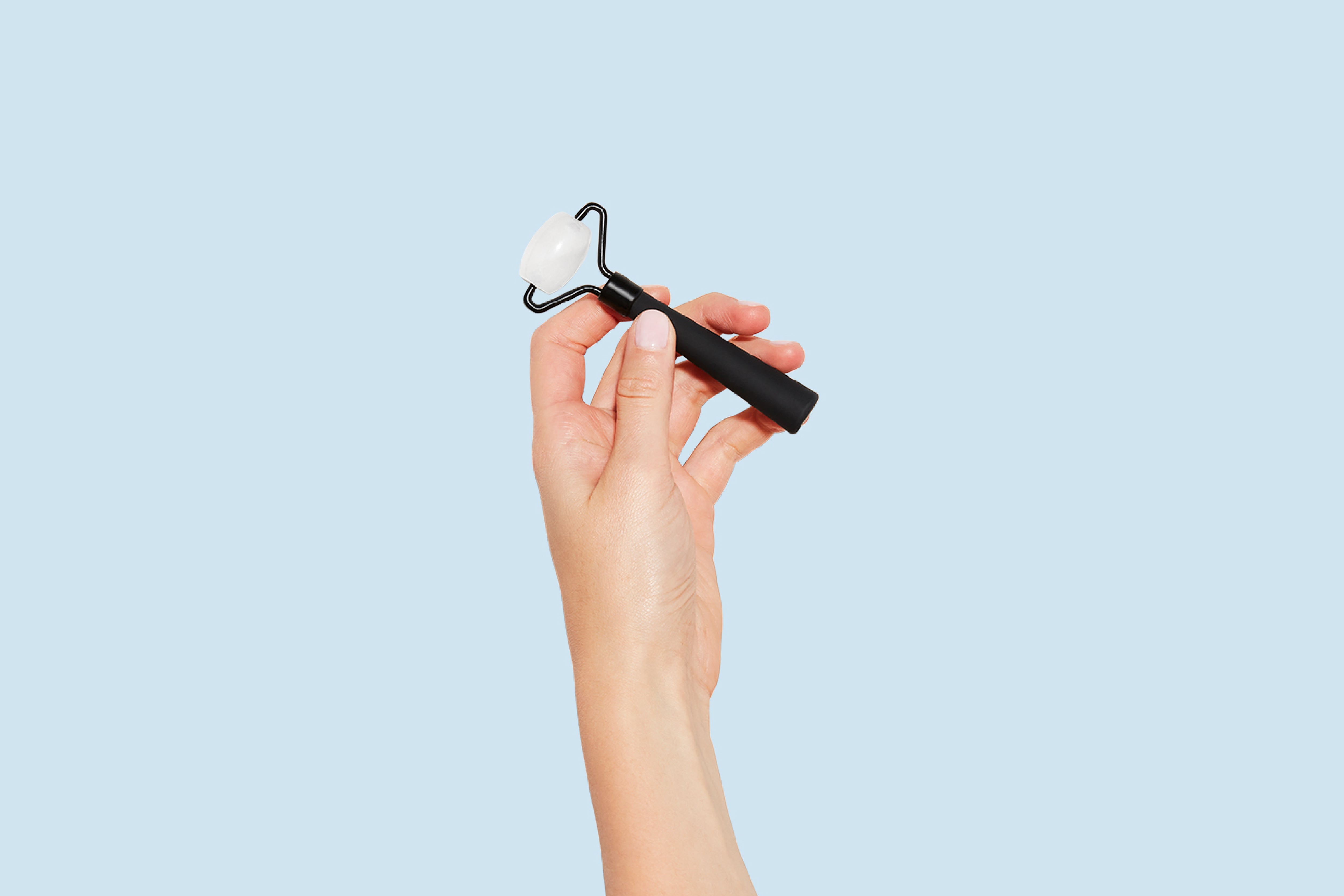 While applying slight pressure, glide the facial roller over the contours of your face in upward and outward strokes, repeating each motion at least 3 times.